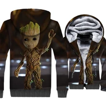 Offer Description for Fashion Brand Clothing 2018 Hot Winter Thick Men's Jacket Streetwear Zip Up Sweatshirt Harajuku Unisex I Am Groot Anime Coat Top